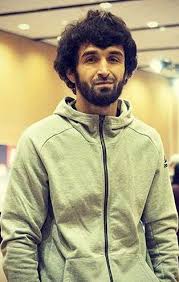 More of a defined/thicker Goatee now, and he's been wearing the Vale Tudo shorts.