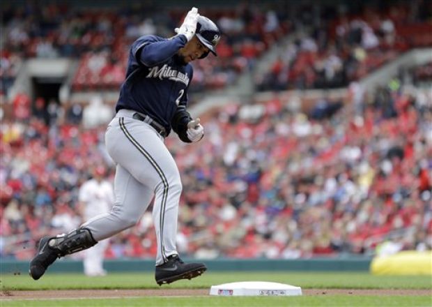 Carlos Gomez (MIL) basically sprints around the bases after a home run, and before he touches second base and third base he taps his helmet twice.