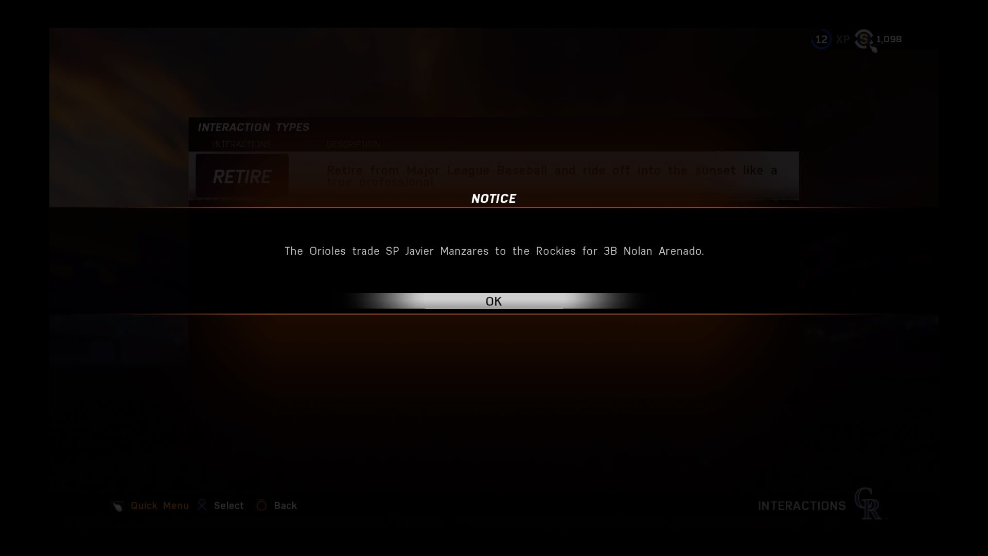 I made a RF that got drafted first by the DBacks on MLB 15 and started off really hot in AA. I had a short stint in AAA hitting .370 before I was called up to the show in the middle of the year. I hit around .240 and was looking to improve for the next season. The following year I batted .298 with 21 bombs but missed the next year with a pretty bad injury (can't remember what the injury was exactly). I then went on to hit .289 with 27 hr in 2018 and .306 with 33 hrs in 2019. 2019 was the first year we had a winning record since being on the team but barely missed the playoffs unfortunately.
