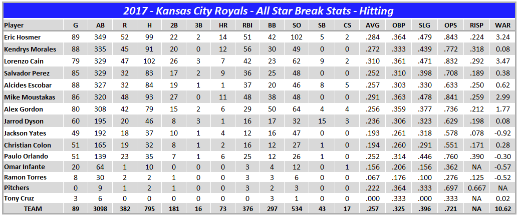 26 more road games between now and September with 19 home games. We have to figure things out soon. This is probably the last chance we have at a run here for the next few years. Here is a list of players that are going to be free agents this winter. Davis, Hosmer, Cain, Moose, Volquez, Escobar, Minor, Duffy, Medlen, Dyson and Gee. Maybe we can get a loan from Donald Trump or something.Comment