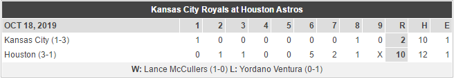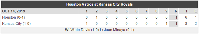 <table><td bgcolor=#004684>Game 1 - ALDS vs Houston Astros - 2019</td></table>