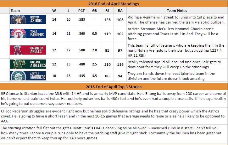 Springer leads the club in OBP and Slugging and had added 6 home runs and driven in 22
