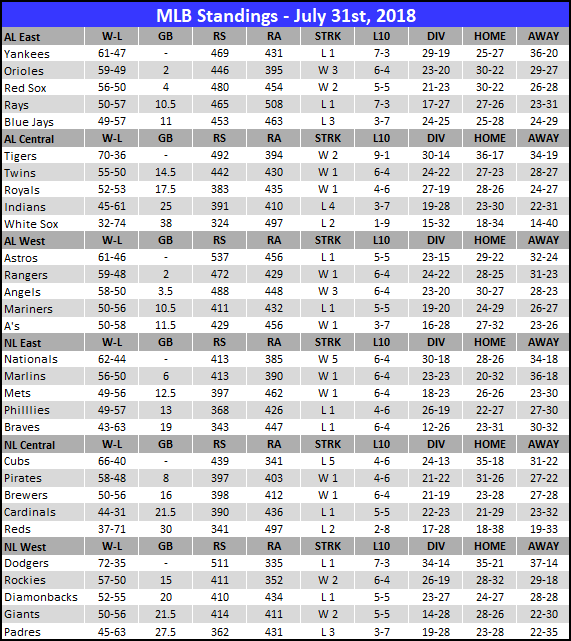 We continue to be the best team in the MLB with a 44-22 record. We're up 10.5 games on the Mets and even with 100 games left to go it's going to take something serious for us to fall back into the group with the rest.