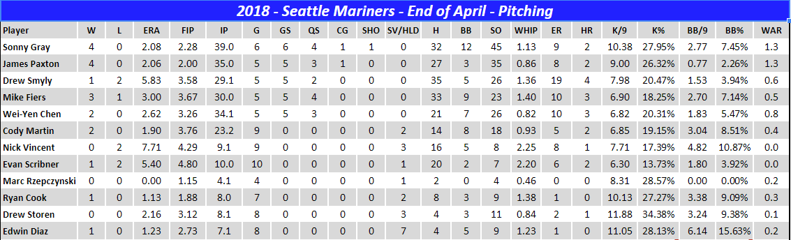 First month is in the books on the quest to get Seattle back to the World Series and things couldn't have started much better. The hitting isn't as prolific when it comes to the long ball but they hold their own, where they shine is in the contact department. Through the month of April we're hitting .313 as a team which is good enough to lead the league. The real surprise has been the pitching, after shipping Felix Hernandez to Miami in the offseason it was expected that the pitching would drop off a bit but Sonny Gray has taken well to being the ace of the staff with career best numbers across the board. To top it off James Paxton has turned things around after season one when he struggled badly at times and limped to a 14-11 record, 4.04 ERA and a 1.27 WHIP. It helps that the division has been rather weak to start the season and Houston is struggling out of the gate giving me the opportunity to seize early season control.