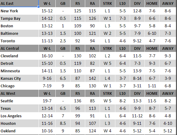 Standings AL