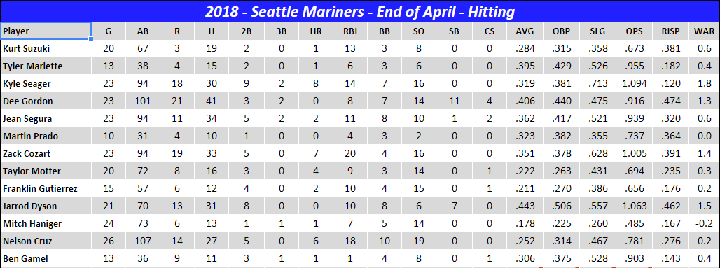 - The Mariners lead the league with a .288 batting average