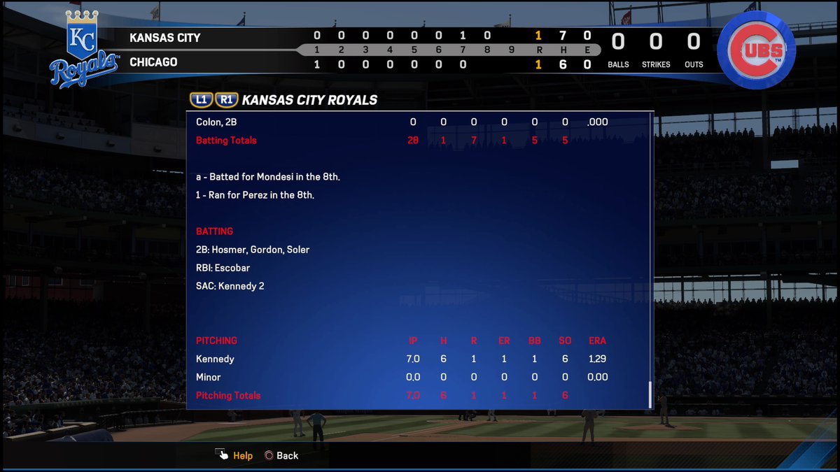 Ian Kennedy (85 stamina) going 7 deep with a pitch count in the 90's (and yellow energy). Still default sliders (except an experimental contact tweak for other reasons):