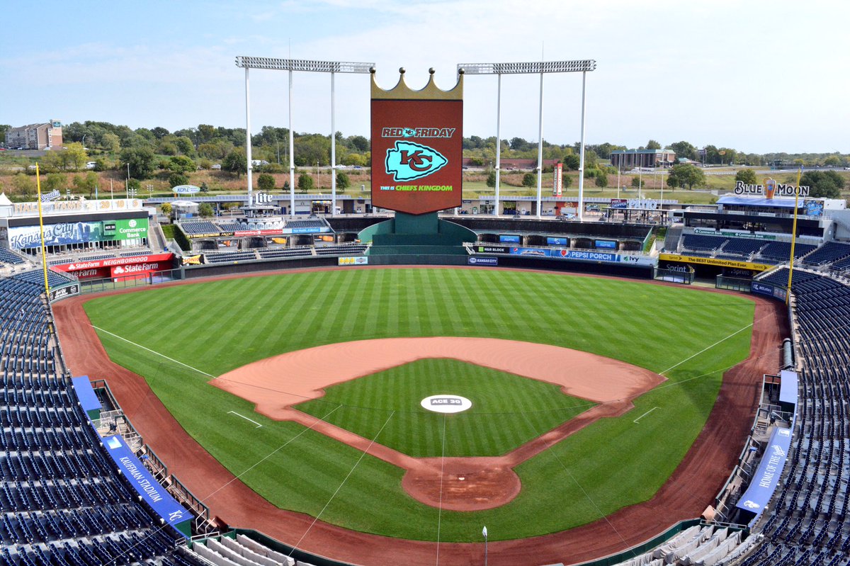 2. Outfield LF & RF Wall LED Signage - At Kauffman, the LED boards extend further than what is currently in The Show. In The Show, there is a fixed graphic at the end towards the bullpen(s), but in reality, the LED board extends all the way to the bullpen edge. Only the last graphic, towards center field, is non-LED.