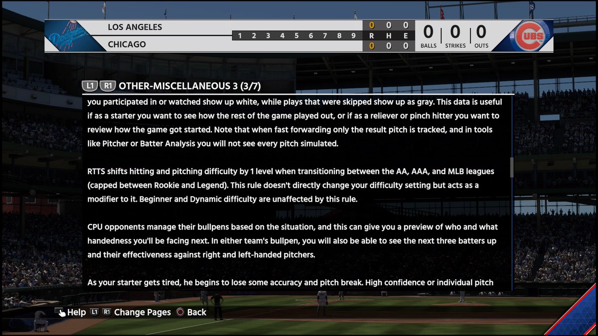 One more thing - I mentioned player lock earlier and that it behaves the same way. If you start a regular play now MLB offline game vs the CPU, All-Star hitting difficulty and switch to player lock in the middle of a player's at-bat, you will see an immediate shrink in PCI size. This reflects the fact that the game is now operating under that difficulty shift rule - and that it's actually one level higher under the hood than what you selected. The reason I specified to check this on a middle-ground level - All-Star - is because if you put your difficulty on, say, Legend and did this there would be no size change - because the difficulty is already capped and cannot go higher than legend.