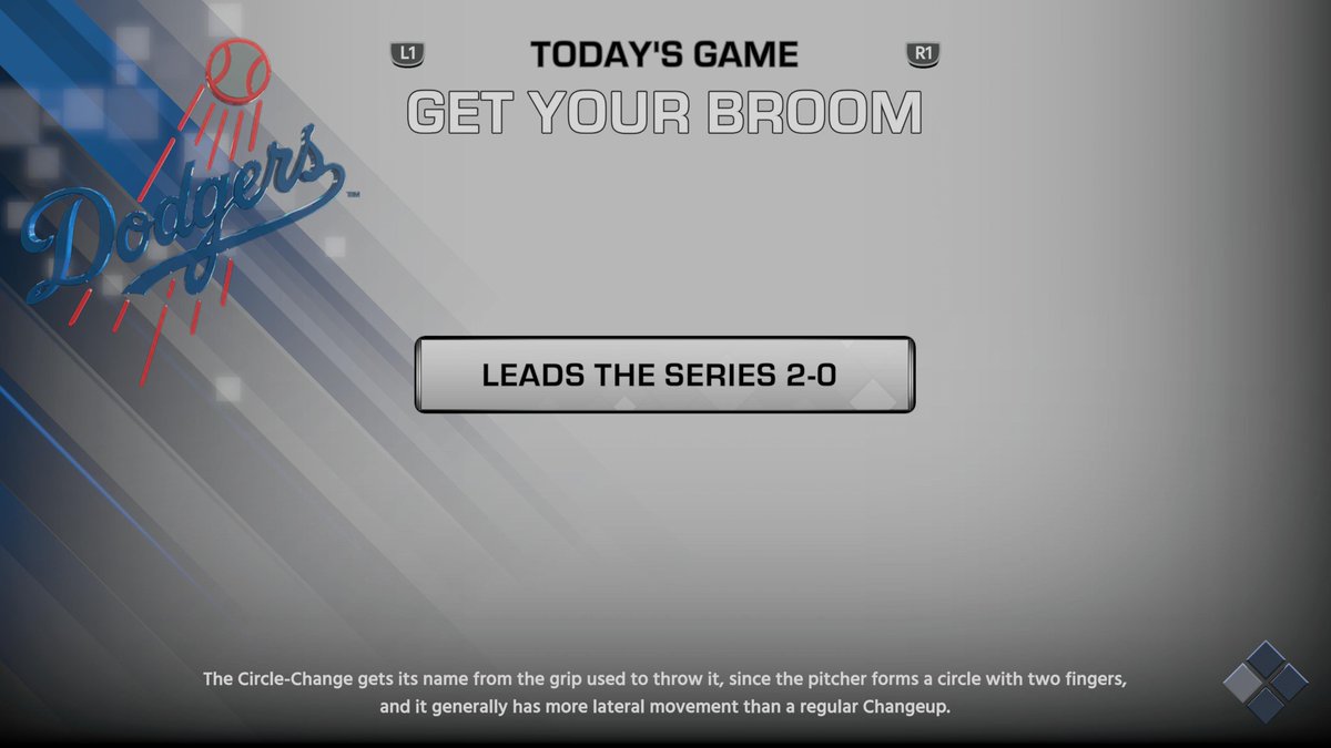 It's pretty cool to see as I was going for the series(NATS) "Sweep" the Dynamic loading screens as I was cycling through them shows a "Get the Broom" Sweep screen. Early on all three get in on the sweep talk and mentions my scores from the previous 2 ball games both in double Digits. Later in the game I'm up by 6 runs and Derosa just flat out said there's no other way to say this cause I don't see them coming back the dodgers has swept this series and the other announcers just let that breathe neither made a sound. This was in the 6th inning on the road. By the 8th inning Dan and Matt was in agreement. And the do a lot of series talk and focus more on the series OSD's for batter walk up when you get to the last game of the series.