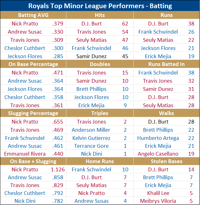 We have had a ton of injuries in the Minors. Currently on the IL is Erick Mejia, Jorge Lopez, Cheslor Cuthbert, Jackson Kowar, Brady Singer and Marten Gasparini. Jorge Bonifacio was on there. Came off and got called up. Then went back on after playing in 13 games. Alex Gordon and Chris Owings are the other 2 MLB players currently on there.