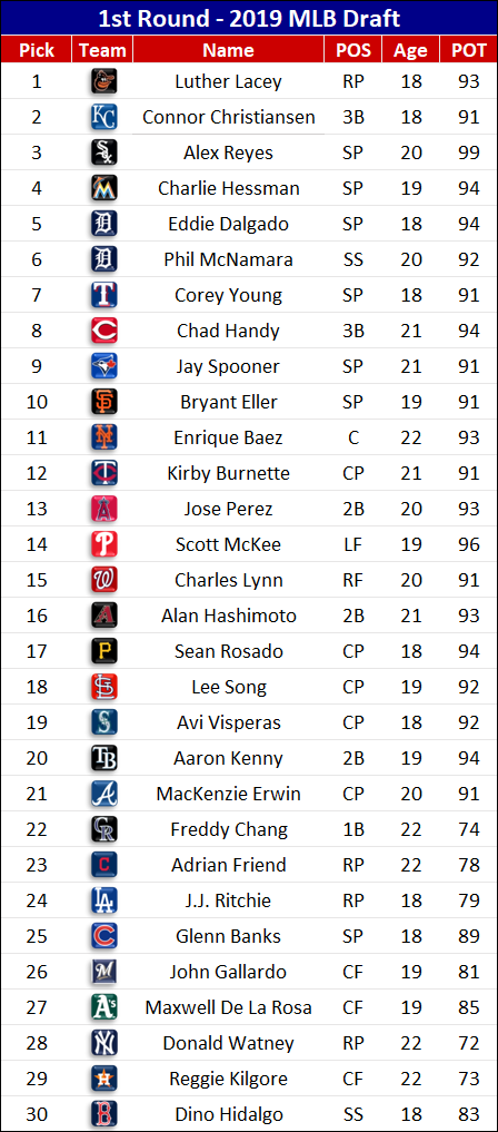 I may go in after the season and edit the ages of all the players that were drafted. Just not sure how it would affect things. If I do edit them any player with an OVR less than 55 would become 18. 55-59 would be 19. 60-64 would 20. 65-70 would be 21. And then 70+ OVR would be 22. Would help teams like Cincinnati who picked up 21 year old Chad Handy with a 94 POT but only a 47 OVR. Might do some test sims to see how things turn out. There also doesnt seem to be any secondary positions so I might go in and give some out.