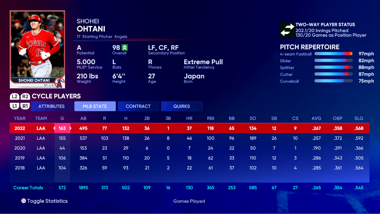 I do have 9 years of sim data that shows he has hit in 162 games and pitched in 33 games. During simming (using single team control of Cleveland) he is utilized correctly by the CPU.