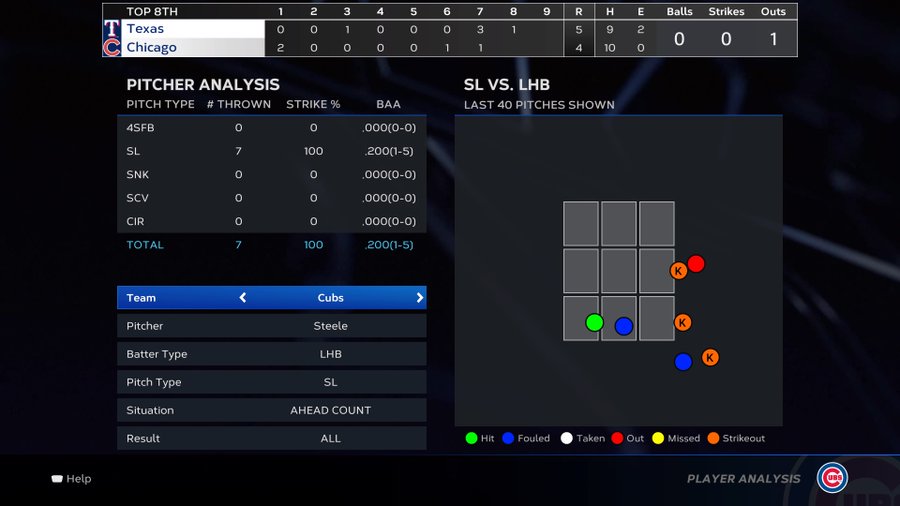 I wish the pitcher/batter analysis tool was brought back to the forefront (accessible via dpad) because it’s an extremely useful tool in recognizing patterns of how you’re being pitched and how you’re pitching so you don’t fall into patterns.