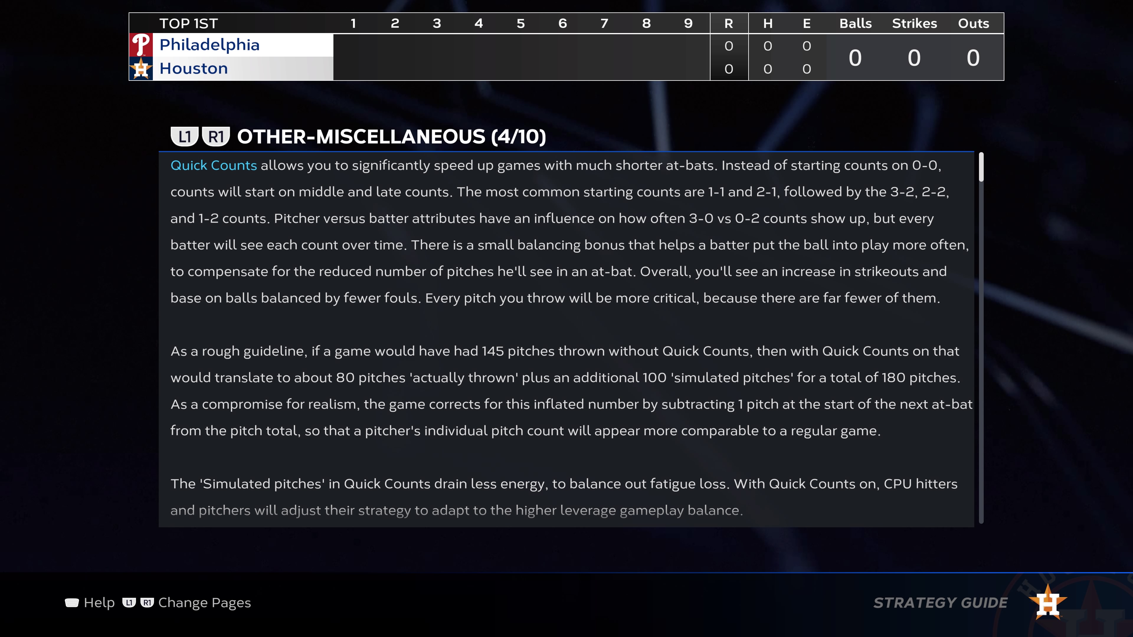 Thanks for the info. I think parts of the first paragraph is outdated as well. I been using quick counts since MLB 20 and I believe in 21, you don’t get anymore 3-0 or 0-2 counts. You only get 1-2 and 3-1 counts as the extremes.