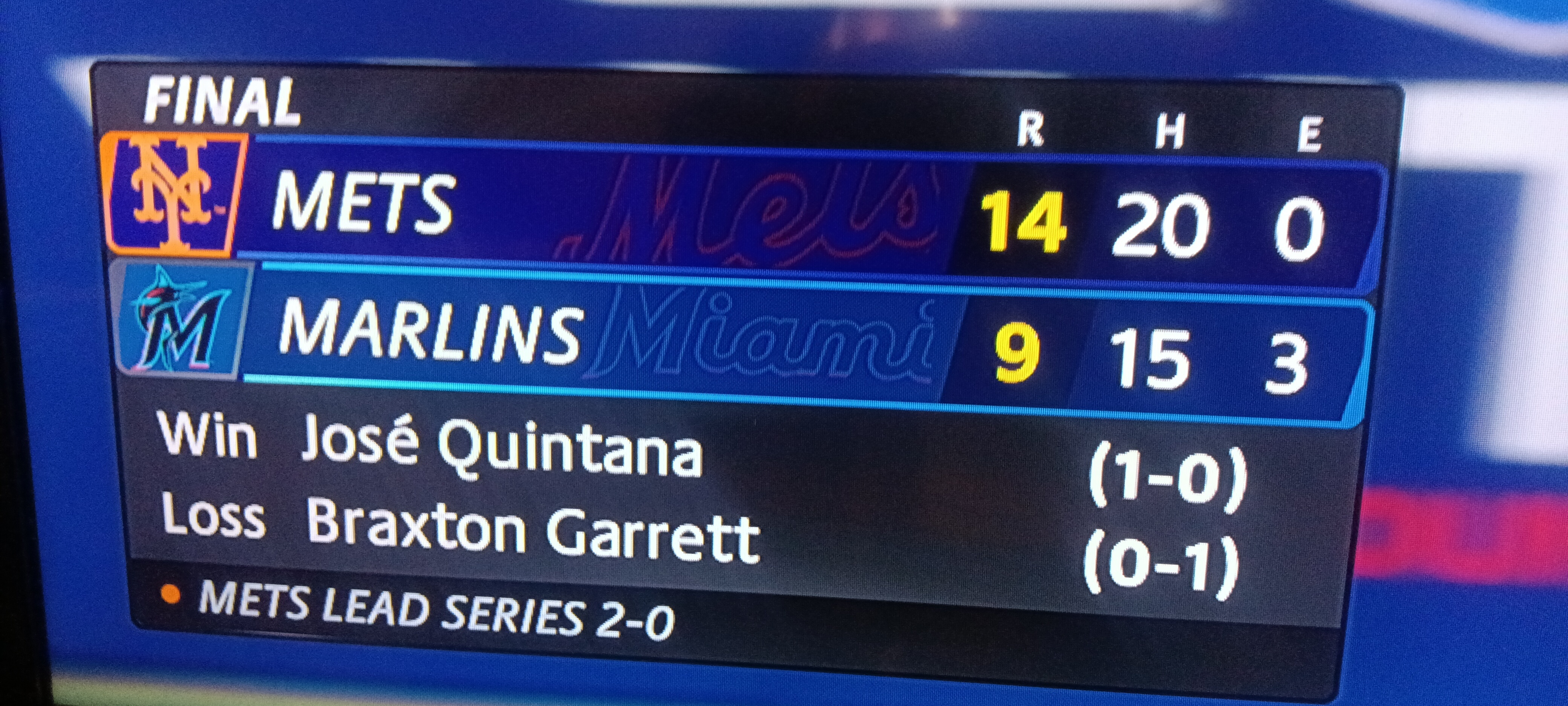 8 of Miami's 9 runs came of off two pitchers Quintana the starter and Severino coming in for long relief.