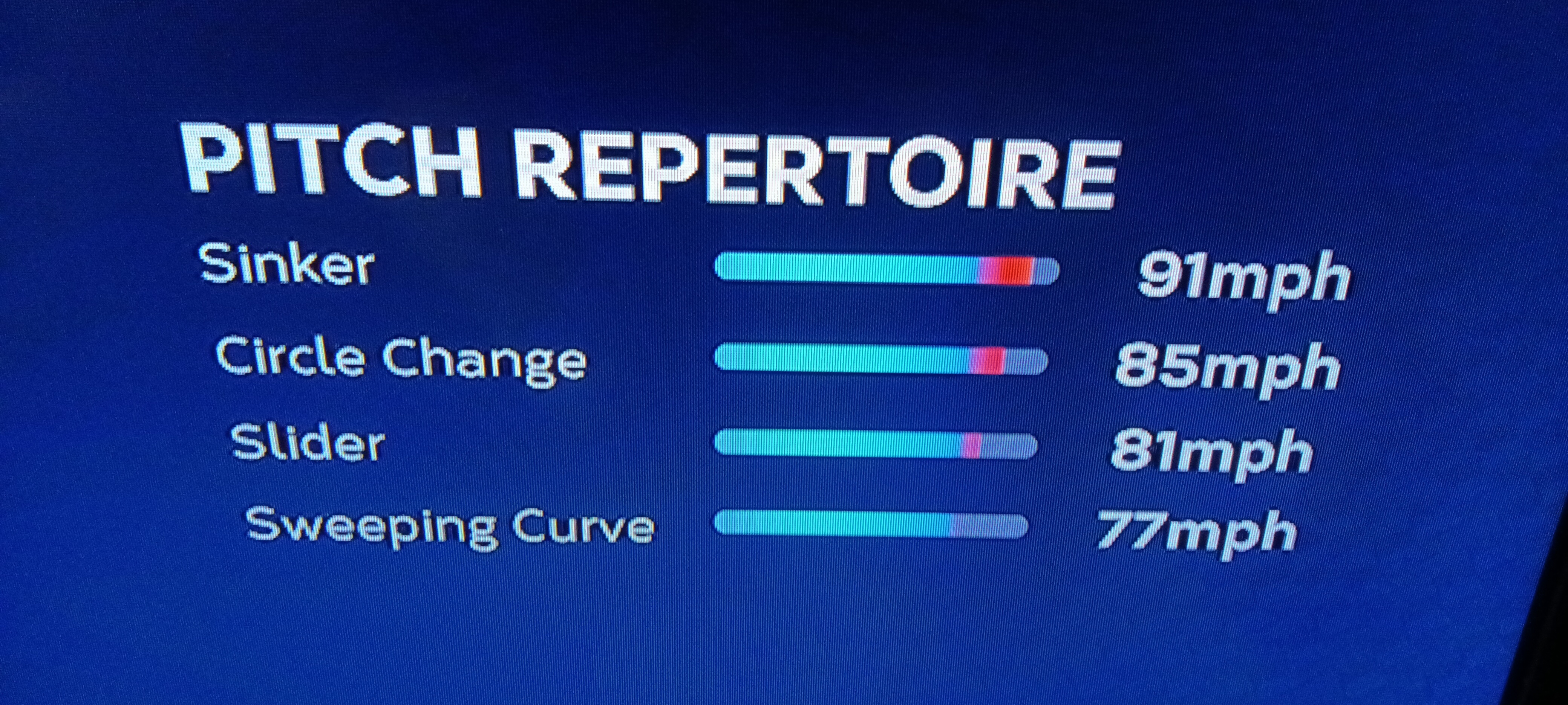 1 more edit - his changeup has picked up speed also, to 87 MPH, his slider to 84 MPH and his curveball to 80 MPH. It looks like the speeds in the screenshot grab were his pitch speeds in 2022. At least according to Statcast.