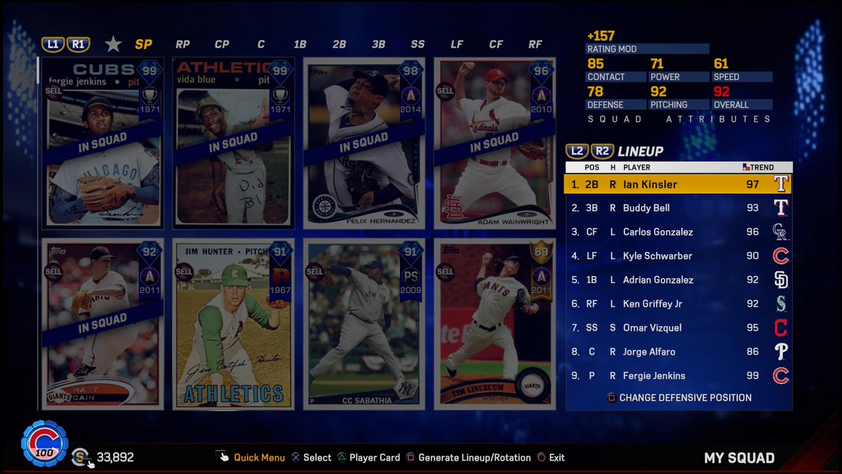 LOVE that PS Schwarber btw, and I've got 93 Holliday to sub in if I see a southpaw. That Schwarber absolutely destroys RHP. 12 HR in 18 games I've played with him (5 were vs CPU, required to finish the Cubs epic).