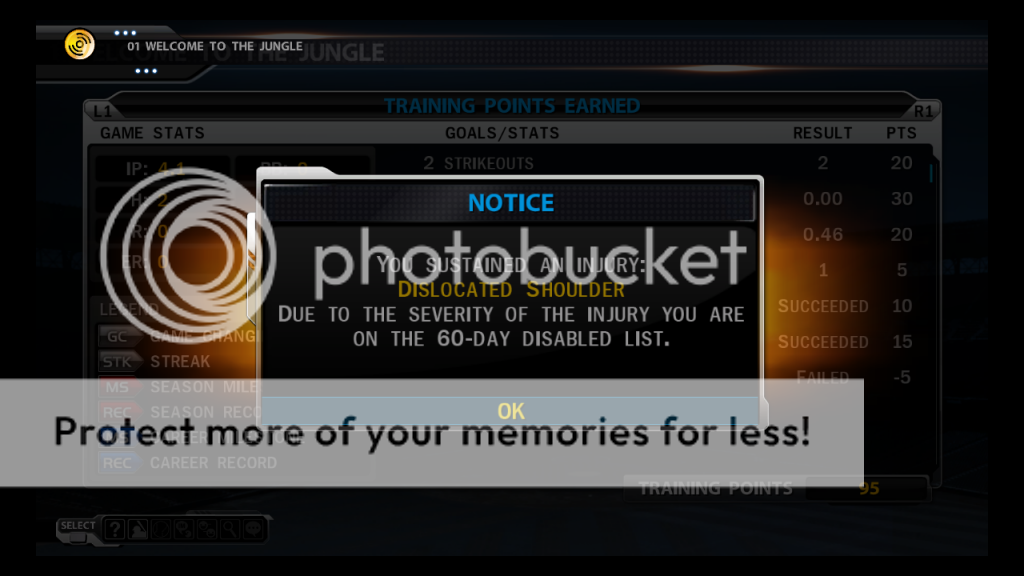 And N51_rob to answer your question about the other goals along with the 4 hits or less one, no they were not reasonable. It was 4 hits or less, 2 or less earned runs, and hold opposing batters to .280 or less. My goals as a starter are much easier to accomplish though.