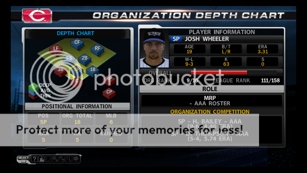 After being drafted by the Reds and a pretty good ST I started my first year in the bullpen but I asked to be put in the rotation and was put in the #5 spot. I pitched really good even though my record didn't show it at 7-6 but my ERA was 2.13. I was put on the trade block around June-July and I just started tanking at the same time and they took me off.