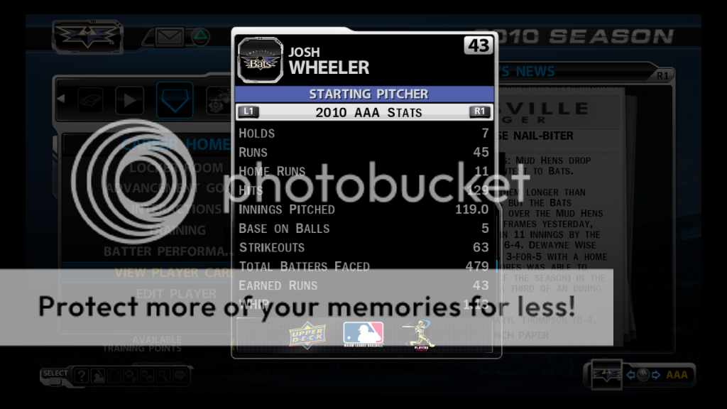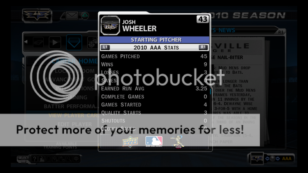 My Next year I miss ST and end up in AAA. After starting 4 games and not doing too badly I was taken out of the rotation.Little did I know I would be buried in the BP for the entire season after completing my goals and begging for a shot I got nothing.