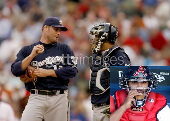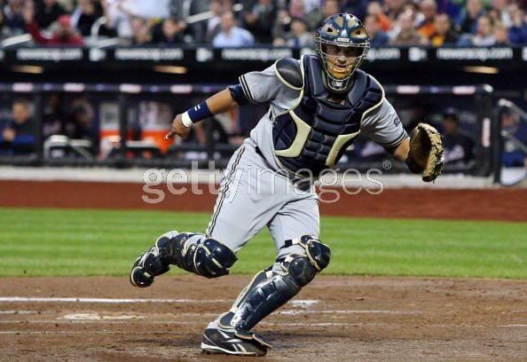 However, since then, most of the catchers have been wearing the newer new style, modeled here by Mike Rivera.
