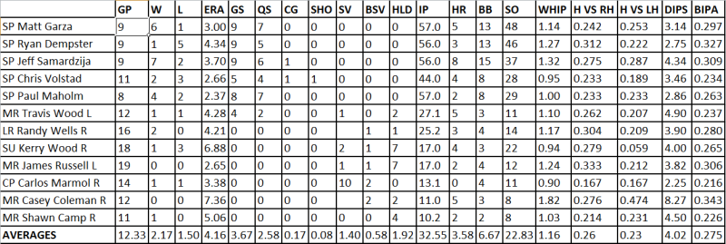 Travis Wood was a SP, but I eventually swapped him with Volstad based on both performance and the fact that Wood gave me another lefty out of the pen