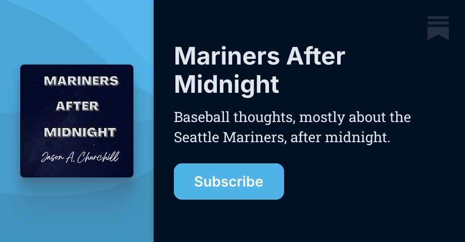 Baseball thoughts, mostly about the Seattle Mariners, after midnight. Click to read Mariners After Midnight, by Jason A. Churchill, a Substack publication.