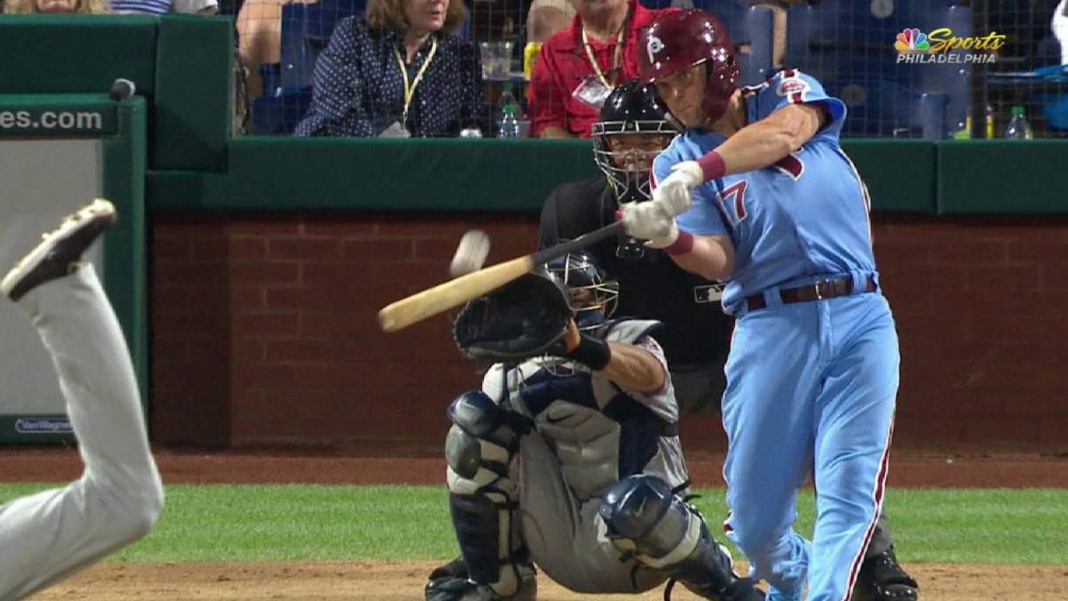 Rhys Hoskins clubs a two-run home run to left field to give the Phillies a 4-1 lead in the bottom of the 7th inning