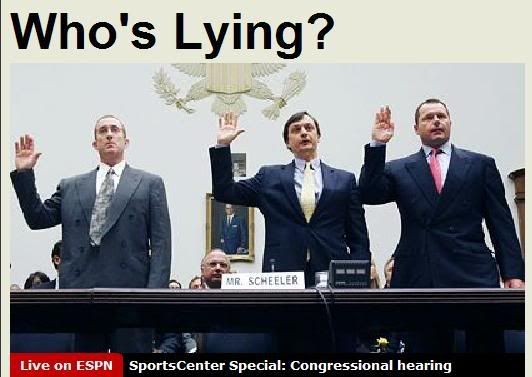 The senator that asked McNamee if he was lying on a few questions where McNamee said "yes" kept cutting him off when he was talking and didn't let him explain things, basically said since he lied in the past everything he is saying now has to be a lie. Which is so funny coming from a politician!