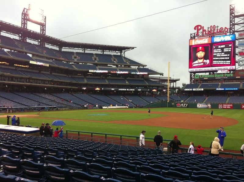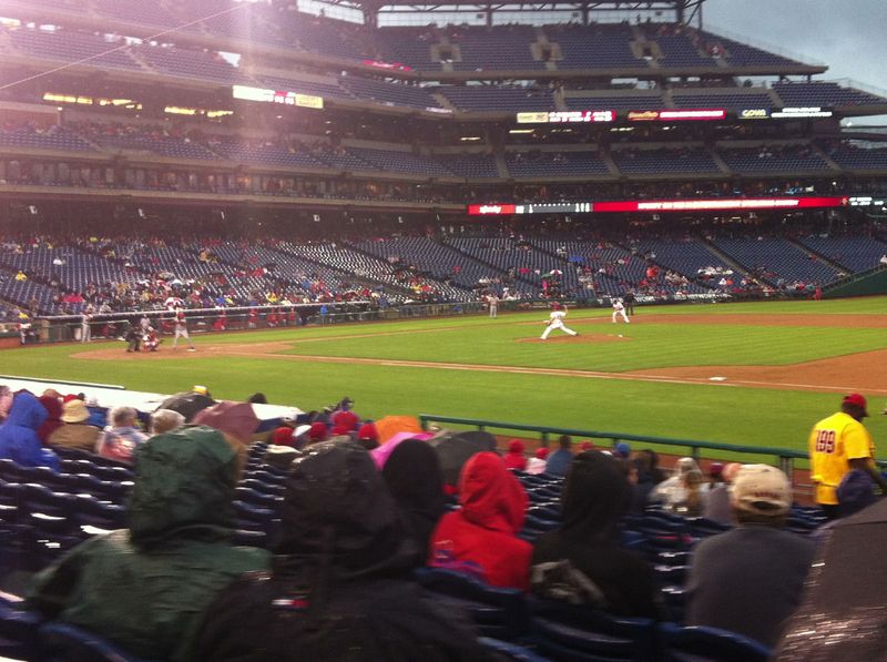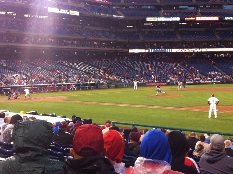 A couple photos from the Tuesday night Reds @ Phillies game. It rained the entire game, but they got it in. Fun game - Phillies tied it with a 2-run HR in the bottom of the 8th. Pap came in for the top of the 9th and made the top of the Reds order look foolish. Then the Phils won on a walk-off bloop single.