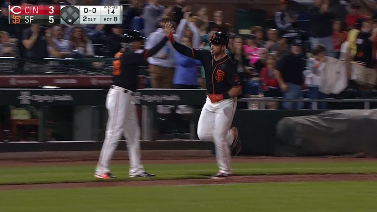 Chris Shaw pulls a two-run home run to deep right field, giving the Giants a 5-3 lead in the bottom of the 8th inning