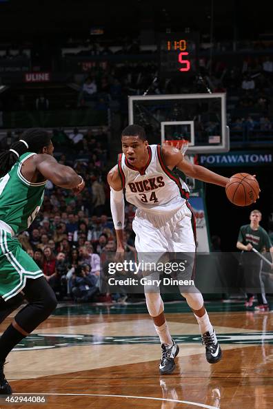 Giannis Antetokounmpo of the Milwaukee Bucks shoots against the Los Angeles Lakers during the game on February 4, 2015 at BMO Harris Bradley Center in Milwaukee, Wisconsin .