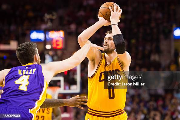 J.R. Smith of the Cleveland Cavaliers takes a shot against the Los Angeles Clippers on February 5, 2015 at Quicken Loans Arena in Cleveland, Ohio.