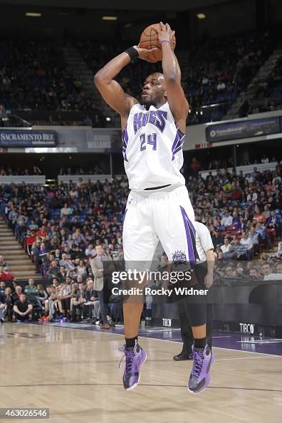 Carl Landry of the Sacramento Kings shoots against the Indiana Pacers on January 31, 2015 at Bankers Life Fieldhouse in Indianapolis, Indiana.
