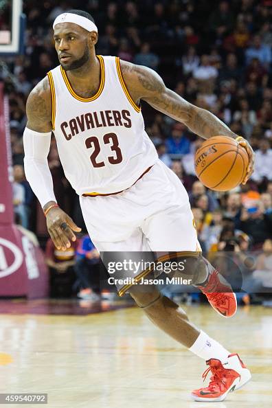 LeBron James of the Cleveland Cavaliers drives to the basket during the first half against the Orlando Magic at Quicken Loans Arena on November 24, 2014 in Cleveland, Ohio.