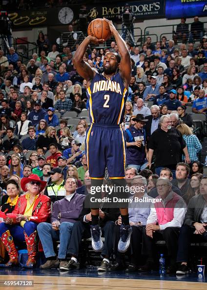 Rodney Stuckey of the Indiana Pacers shoots a jumper against the Dallas Mavericks on November 24, 2014 at the American Airlines Center in Dallas, Texas.