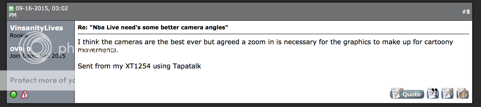Dude is a nba live fan boy dont kid ureself, and just joined OS 6 days ago...
