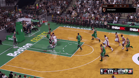 Your typical Play Now Online Match. After the Tony Allen layup you can clearly see Glen Davis wayyyy ahead of Chris Bosh yet somehow, someway by the time Wade catches his half court inbound, Glen Davis is nowhere near Bosh and gets beat to the rim. And don't get it twisted, even if Davis was with Bosh, Wade would have had still gotten to the rim anyway.