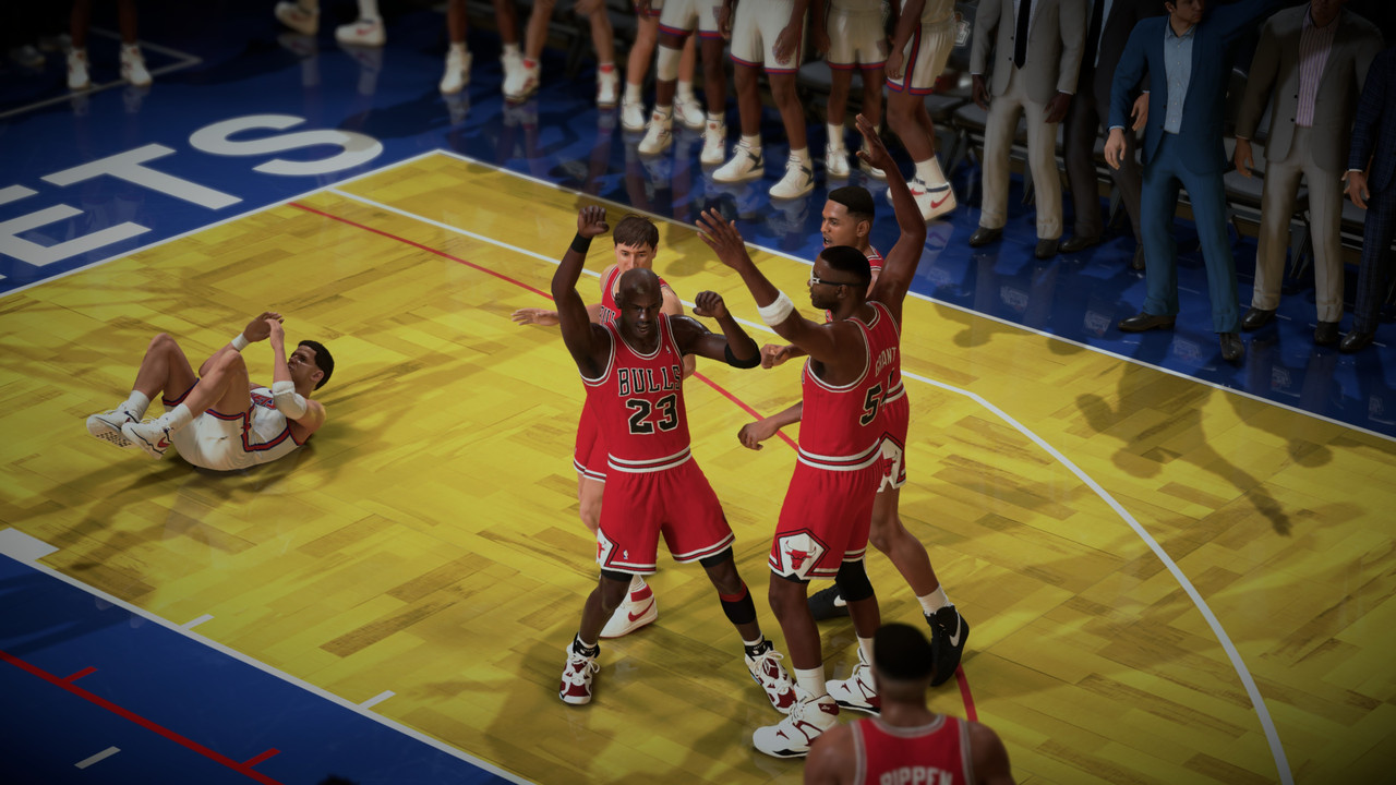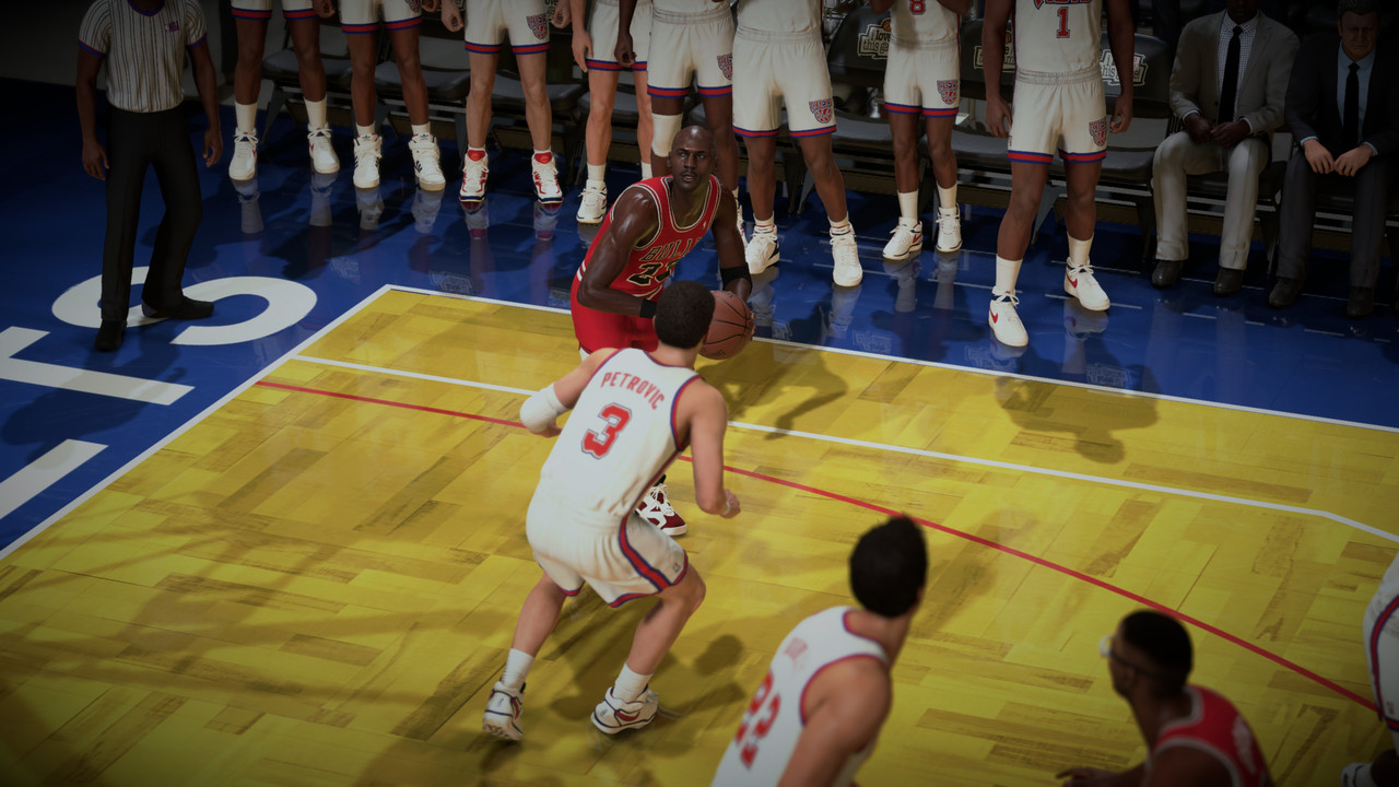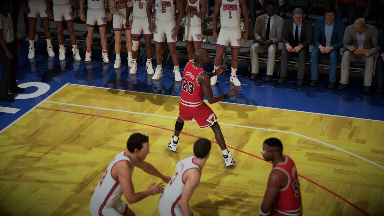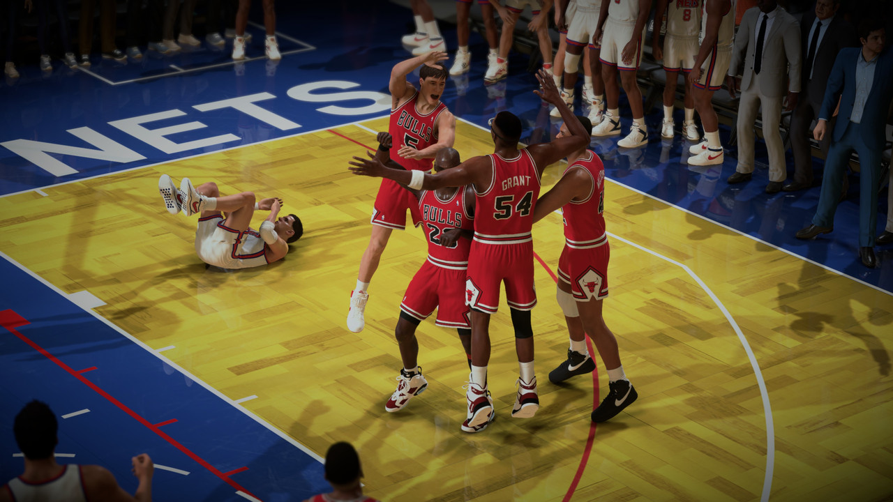 Petrovic made a basket with 2.8s, Bulls have the Ball, Nets Steals the Ball from Jordans hand, i made foul! 1.8s left, Nets have 2FT. Kenny Anderson made 1 of 2, Grant grab Rebound, with 1s left. MJ receive Pip pass and BAAAAMMM!