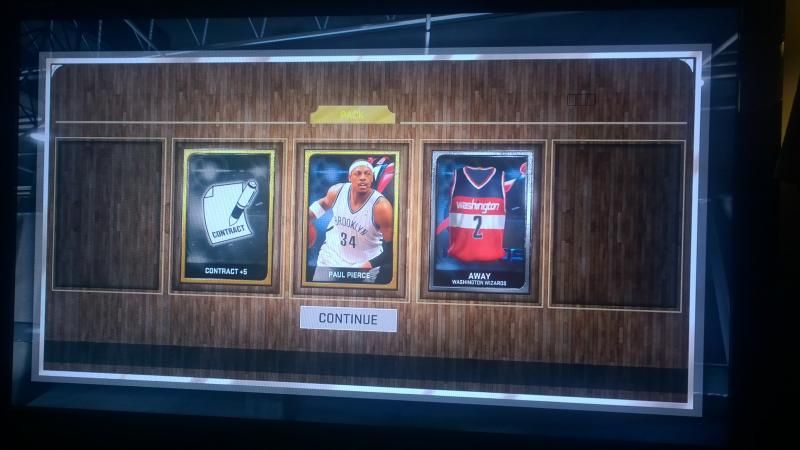 First of all in domination I picked up 3 Durants, so I put 2 on auction and got 80,000 from both. From auction I got Kobe for 23k, which might be kinda overpriced, but he was one of my best players in 2k14. Then I just happened to see a rondo auction ending at like 6k, so I just nabbed him. I tried to complete the knicks collection, and spent another 20k. I tried looking for Lebron, but there were barely any cards, and the ones their were completely overpriced. Then I blew the rest on V.I.P. packs. picking up:
