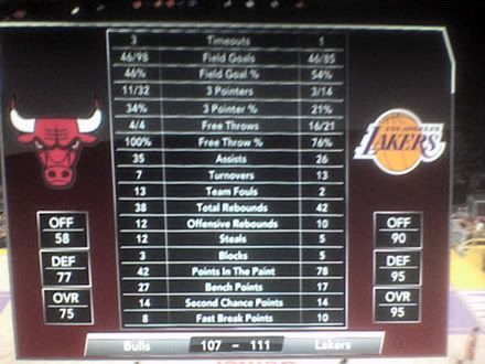I cpu/cpu one full 12 minute game between Lakers and Blazers, Final score 109-106. Kobe seemed pretty aggresive. Weird thing i saw in the boxscore was Portland got to the line 45 times and Steve Blake had 16 ftas....wtf? lol....Might be an abberation might not...need more games tested. I fell asleep so im not sure "how" he got all the FTA's. but i think it was a bunch of shooting fouls on jumpers...cant say for sure.