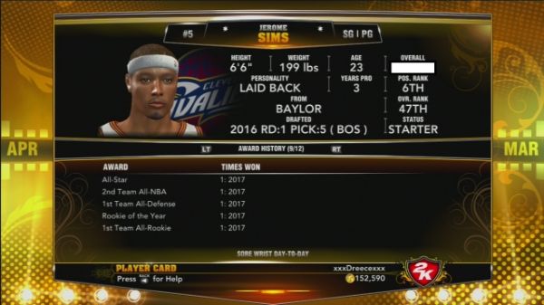 No prob just helping out where I can. I just been having a blast and getting frustrated playing with and against these guys.. everybody check out SG Frank Cameron from DC1 he gave my team absolute fits during my playoff series with the Celtics.