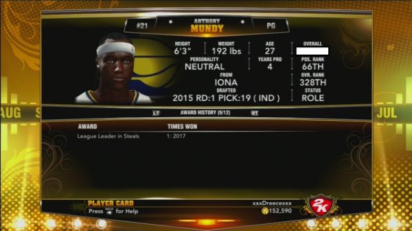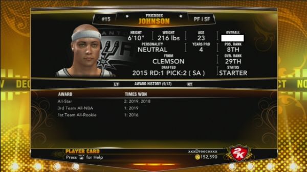 Interesting Dreece. Nice little association you have going there. Congrats. For some reason, I have yet to have an All-Star or All-NBA 1st,2nd,or 3rd team. I'm also in 2019. I have seen A LOT of these guys win "Most Improved Player". It seems like someone in their 2nd or 3rd year wins it almost every time in my association. Regardless, I'm sure it will happen sure enough.