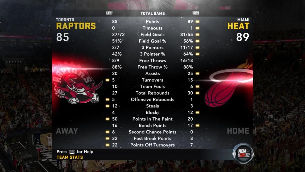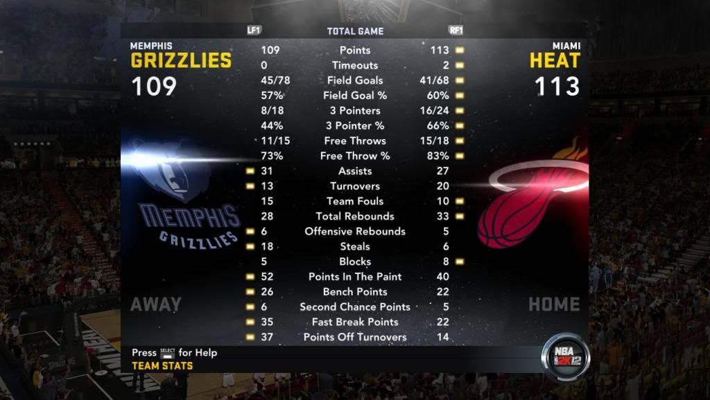 This is the Quarter per Quarter Stats and Final Stats in the game.