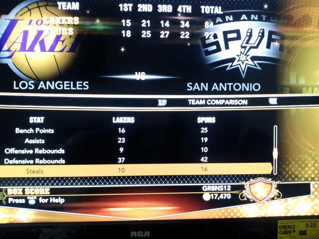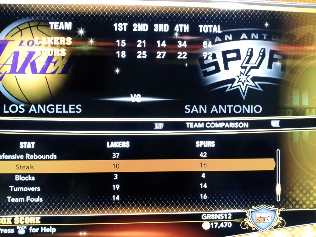 This is the last one I played yesterday and it was very realistic. The struggles throughout the game were great, the runs didn't feel scripted, and my attemted comeback at the end was just a matter of Kobe finally getting hot at the right time. Overall, this is how I want the game to play from now on.