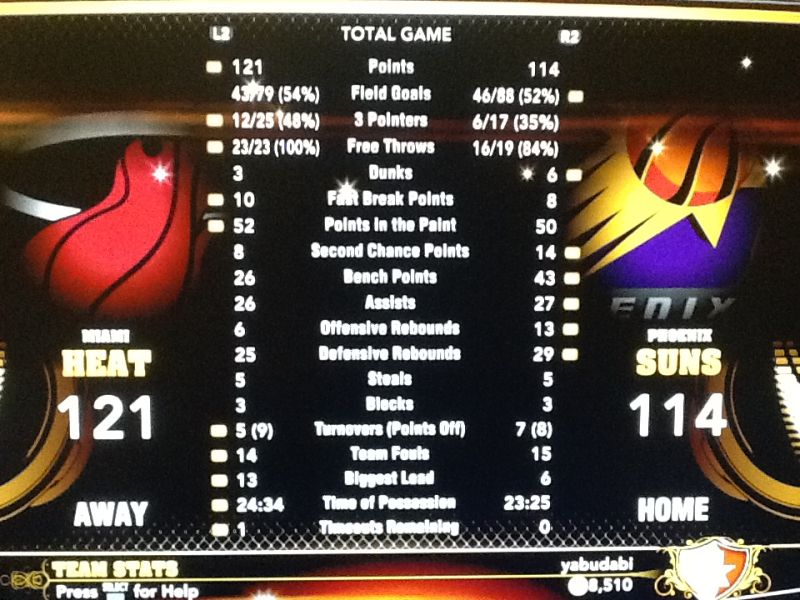 Played well on this game. Maybe it was because it was the heat? Game was high scoring..im not sure if that's normal for both of these teams. But the feel of this game was way more better with the lastest update. Here are the stats