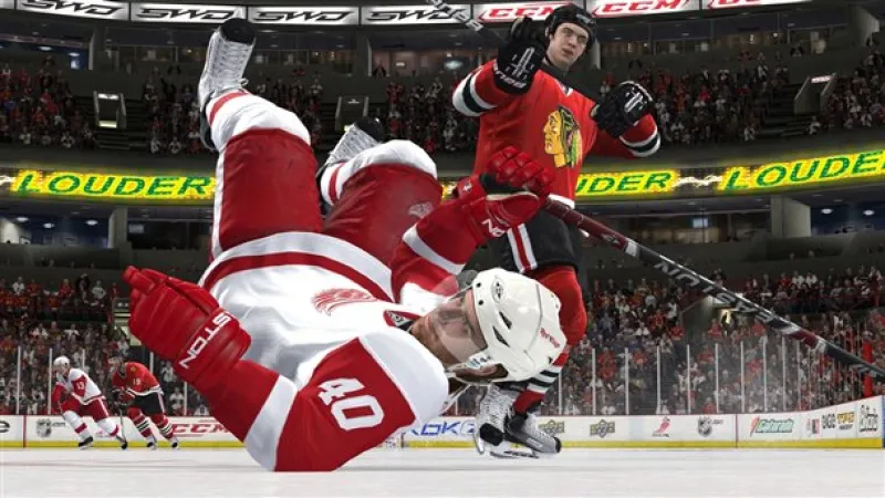 Hockey is a violent sport filled with bone-rattling hits along the boards and wince-inducing open-ice checks, but over the past few years the checking in NHL has become too predictable. With the new real-time physics engine, however, every hit will look and feel different. Developed internally with the help of the Fight Night team, the new engine gives realistic physical properties to the sticks, pucks, and players, bringing the game closer to what we see every night on the ice. Like Natural Motion’s Euphoria technology, this procedural system generates animations on the fly, getting rid of the repetitive canned animations that plague so many sports games. Whether you’re on open ice or along the boards, every collision looks unique – players can catch the buckles along the benches, get their skates tied up, or even keep their balance if the checker only gets a small piece of him. Players rebound viciously from the glass after getting checked into the boards, and if you hit your victim hard enough he may drop his stick or suffer a gruesome injury.
