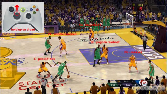 To sub your own player during gameplay (without pausing), you can press down on the d-pad to open mini substitution menu... (Imagine your playing as the Center Brook Lopez)