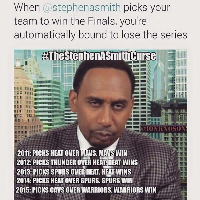 This is probably based off his pre-series prediction. I listened to First Take podcast all week and he's picked Cavs in certain games but he's surprisingly never changed his series prediction of Warriors.Comment